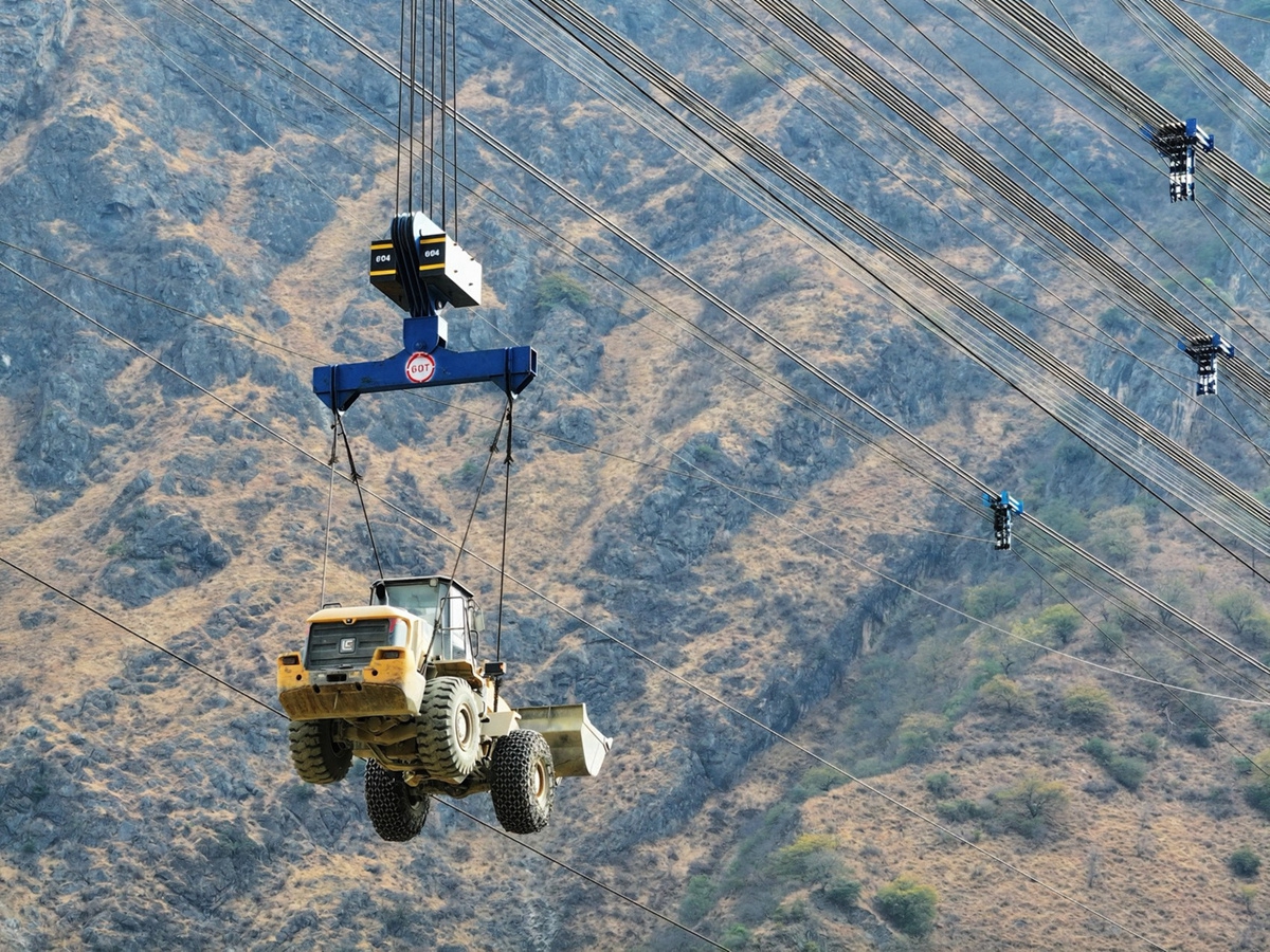 4月16日,涼山州深山峽谷中,上演了一出“空中飛車”。在西香高速理塘河特大橋的建設(shè)現(xiàn)場(chǎng),一臺(tái)大型裝載機(jī),穩(wěn)穩(wěn)掛在一道橫跨理塘河的“高空索道”上,從鹽源岸騰空而起,“飛越”腳下波濤洶涌的河水,平安降落在對(duì)岸的木里岸。
