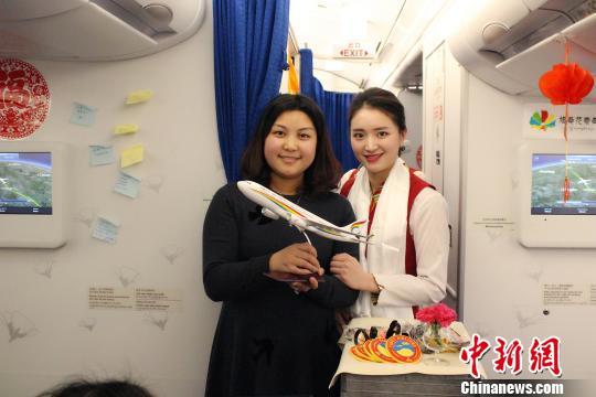 旅客收到了新年禮物飛機(jī)模型。 趙朗 攝