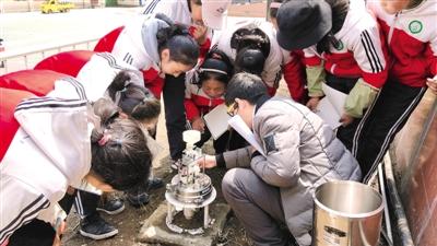 圖為氣象技術(shù)人員向?qū)W生普及校園氣象站相關(guān)知識。扎西頓珠 攝