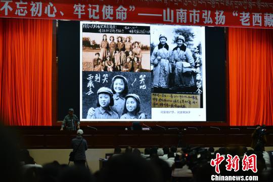 “這張照片拍的是十八軍進藏女兵在修筑川藏公路時的合影,她們手掌向前,相互比較誰手上磨出來的繭子更多……”9月17日,原中國人民解放軍第十八軍宣傳部部長夏川之子蘆繼兵,在西藏山南市向當(dāng)?shù)攸h員干部及民眾講述十八軍進藏故事,弘揚“老西藏精神”。