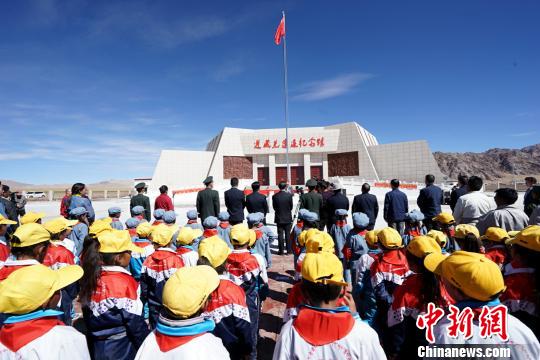 27日,進藏先遣連紀(jì)念館開館儀式在海拔4500余米的西藏阿里改則縣先遣鄉(xiāng)扎布村舉行,來自新疆軍區(qū)軍人代表、武警戰(zhàn)士、烈士家屬和當(dāng)?shù)攸h員干部、牧民等200余人重溫了當(dāng)年136名先遣連英雄壯舉。