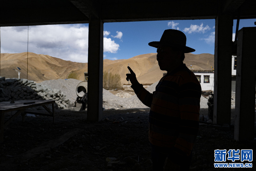 “牛頭旅館”老板多吉在新蓋的旅館監(jiān)工(5月17日攝)。新華社記者 普布扎西 攝