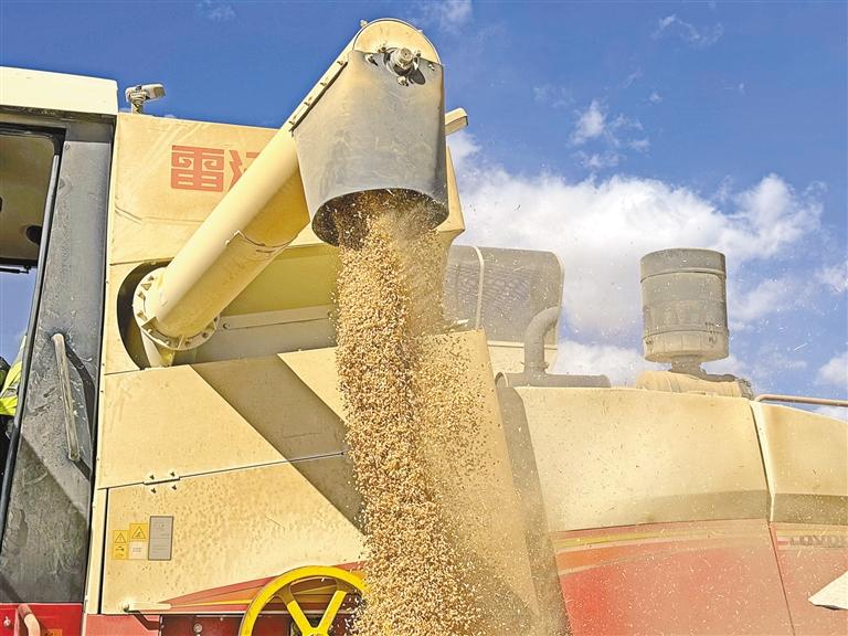 在白朗縣巴扎鄉(xiāng),沿著國道兩邊一幅金黃色的高原“豐收”畫卷徐徐鋪展開來。在巴扎鄉(xiāng)金嘎村,縣農(nóng)牧綜合服務中心的旦增這兩天也把辦公室搬到了田間地頭,指導當?shù)厝罕姷那锸展ぷ??!霸谌镩_展之前,我們組織農(nóng)機合作社的農(nóng)戶進行農(nóng)機具維修保養(yǎng)工作,并對成熟區(qū)域采取了成熟一片收割一片的收割方式,今年全縣糧食播種面積12.74萬畝,預計糧食產(chǎn)量持續(xù)穩(wěn)定在5萬噸以上。”旦增介紹道。