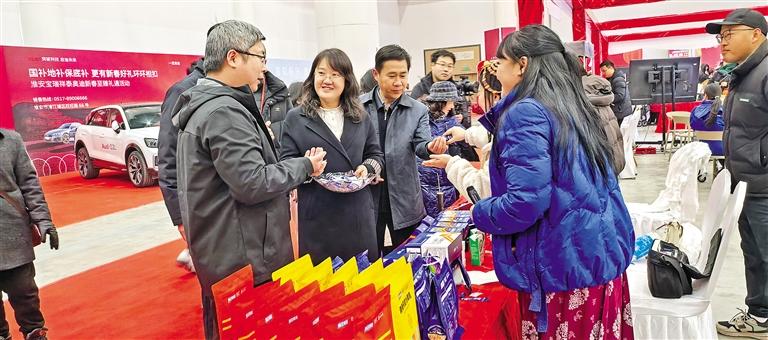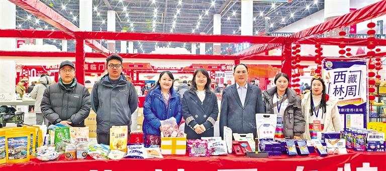 江蘇省淮安市文旅嘉年華·樂購清江浦年貨大集上西藏自治區(qū)林周縣農(nóng)特產(chǎn)品展銷區(qū)。 本報(bào)記者 央金 攝