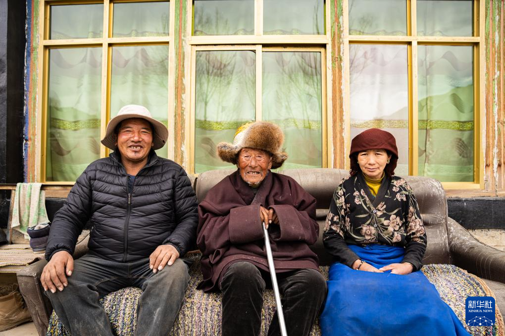 索扎老人和家人合影(3月20日攝)。新華社記者 丁增尼達(dá) 攝