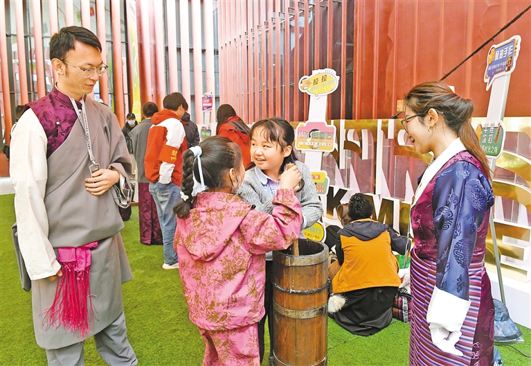 市民游客在西藏博物館內(nèi)集章兌換禮物。