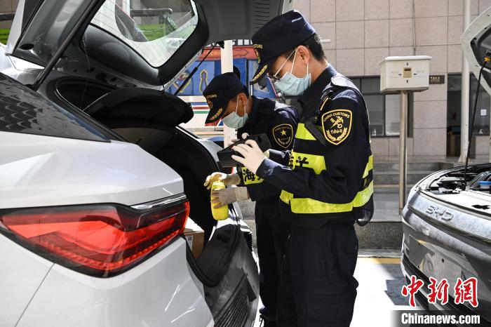 5月25日,在西藏自治區(qū)日喀則市吉隆縣的吉隆口岸,海關(guān)工作人員在對(duì)出口的國(guó)產(chǎn)新能源汽車進(jìn)行檢查。中新社記者 貢嘎來松 攝