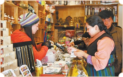游客在吉隆鎮(zhèn)吉甫村購買當地特色商品。拉巴宗吉攝