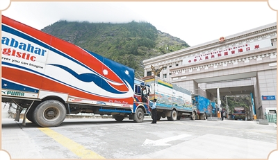 口岸兩側,總能看到大貨車來來往往。貨車車身和駕駛室被司機精心裝扮,有的車廂上還掛著中尼兩國國旗,用彩色涂料寫著“中尼友誼”“好兄弟”等字樣。