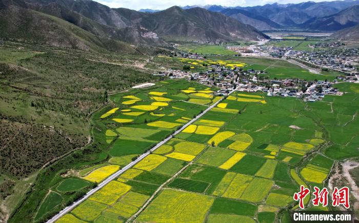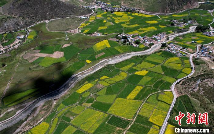 7月5日,西藏拉薩市墨竹工卡縣油菜花盛放。無人機航拍視角下,一塊塊金黃的油菜花田猶如大地的調(diào)色板,風(fēng)光宜人。(無人機照片)中新社記者 李林 攝