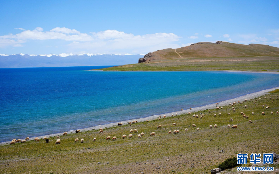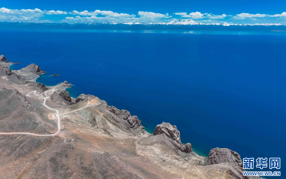 圖為夏日納木錯(cuò)(7月7日攝,無(wú)人機(jī)照片)。新華網(wǎng)發(fā) 車(chē)宇軒 攝