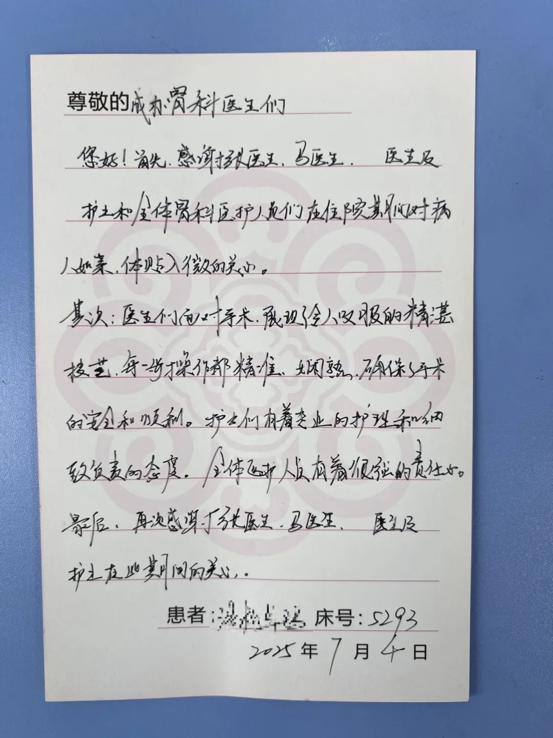 術后卓瑪阿媽恢復迅速,第二天就能下地自行活動。卓瑪阿媽及家屬對治療效果非常滿意,特意手書感謝信。