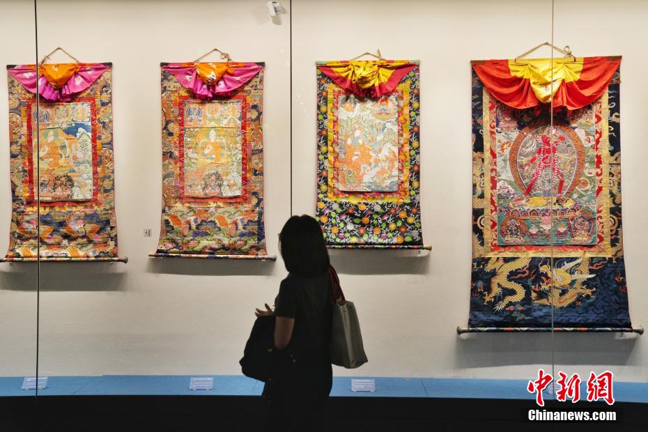 7月15日,在位于西藏拉薩的西藏博物館,觀眾品鑒唐卡藝術。據(jù)了解,西藏博物館設有基本陳列《雪域長歌—西藏歷史文化展》《離太陽最近的人—西藏民俗文化展》,充分展示西藏地區(qū)歷史發(fā)展進程與文化面貌。中新社記者 張祥毅 攝