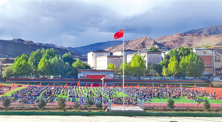 七十余載櫛風(fēng)沐雨,丁青縣小學(xué)早已舊貌換新顏。昔日的鐵皮房、泥土地,已被占地近3萬平方米、建筑面積超1.2萬平方米的現(xiàn)代化校園取代。寬敞明亮的教學(xué)樓、標(biāo)準(zhǔn)化的運(yùn)動(dòng)場、齊全的各類功能教室,促進(jìn)了孩子們的全面發(fā)展。截至2024年9月,學(xué)校擁有學(xué)生2650余名,教學(xué)班級(jí)49個(gè)。一支136人的高素質(zhì)教師隊(duì)伍扎根于此,教書育人。