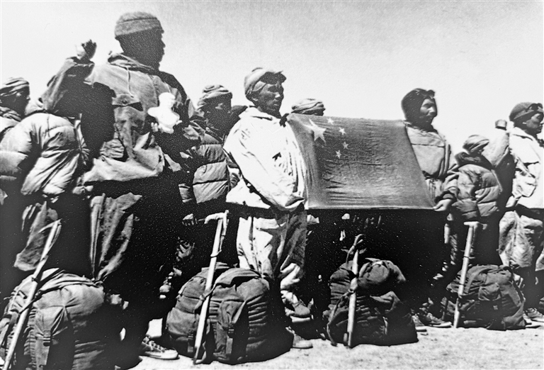 據(jù)羅則介紹,50年前,“九勇士”成功從北坡登頂珠峰之后,隨即開展了向黨和人民匯報(bào)勝利的喜訊、豎立金屬覘標(biāo)測(cè)量珠峰高度、展示五星紅旗、拍攝在頂峰活動(dòng)資料、搜集山頂冰雪樣品、遙測(cè)地球最高點(diǎn)上的人類心電圖、測(cè)量峰頂上的覆雪深度、采集峰頂花崗巖石標(biāo)本、拍攝頂峰全景的電影、把毛主席石膏塑像安放在峰頂上、為登頂勇士拍攝紀(jì)念照片11項(xiàng)工作。