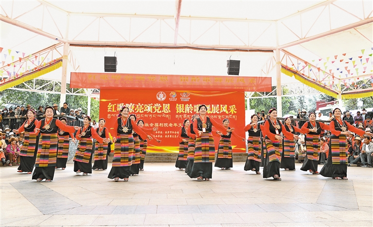 近日,拉薩市社會(huì)福利院在龍王潭公園舉辦“紅歌嘹亮頌黨恩,銀齡歌舞展風(fēng)采”主題活動(dòng)?;顒?dòng)現(xiàn)場(chǎng),老年學(xué)員們通過(guò)紅歌聯(lián)唱、傳統(tǒng)鍋莊舞表演及民族手工藝品展示,全面展現(xiàn)“老年文化學(xué)堂”開(kāi)設(shè)雙語(yǔ)、舞蹈、手工等課程的階段性成果。據(jù)了解,該活動(dòng)旨在推廣“文化養(yǎng)老”服務(wù)模式,吸引更多社會(huì)老人參與福利院特色課程?!?/p>