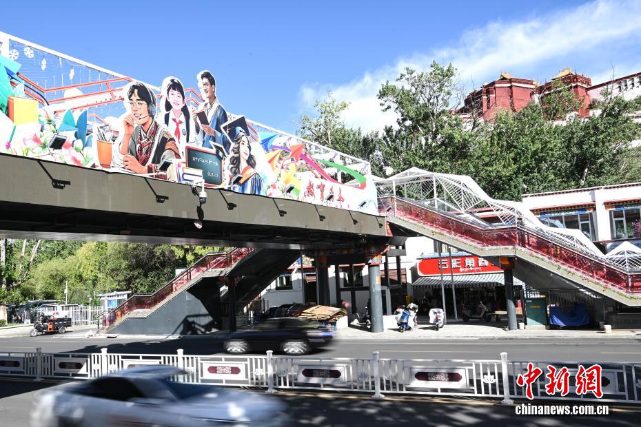 圖為以民族團結(jié)為主題的人行天橋。中新社記者 貢嘎來松 攝