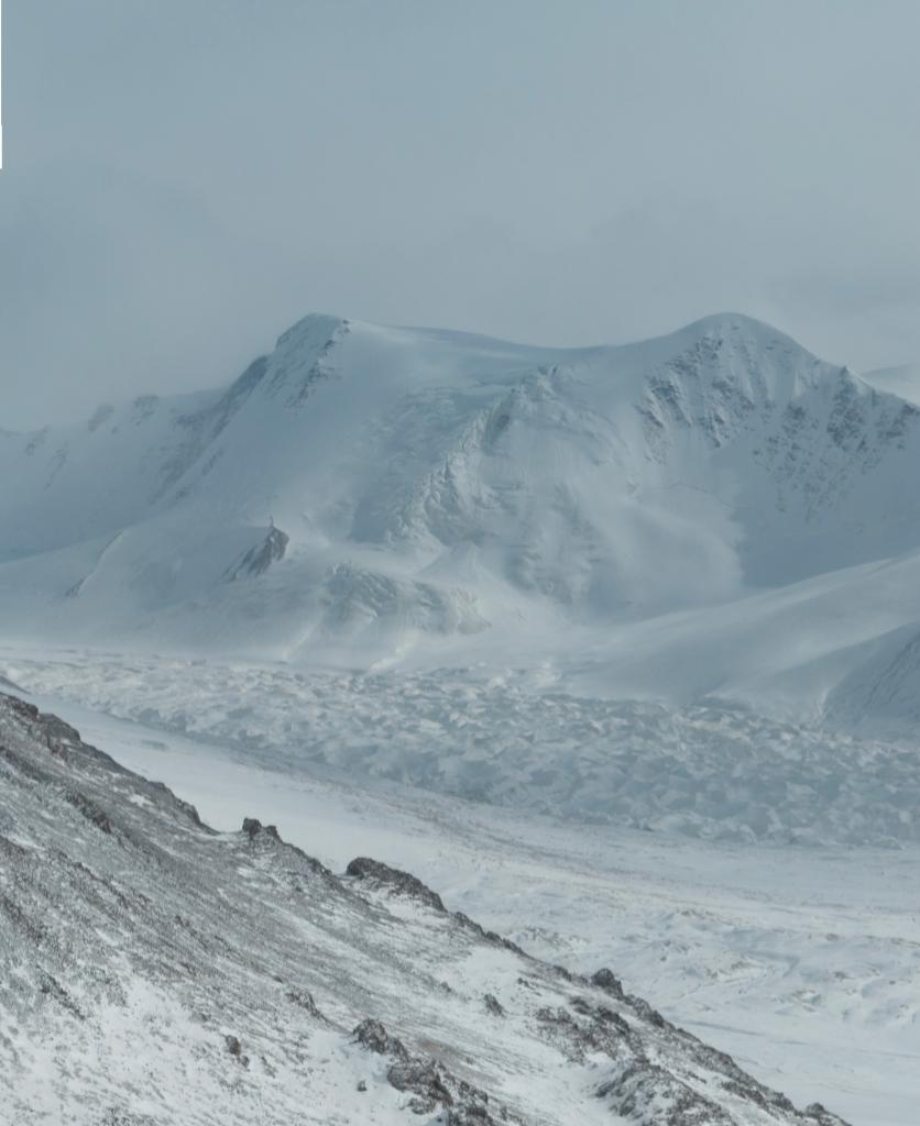 這是2024年2月2日拍攝的格拉丹東峰腳下的姜根迪如冰川。(無人機(jī)照片)。新華社記者 晉美多吉 攝