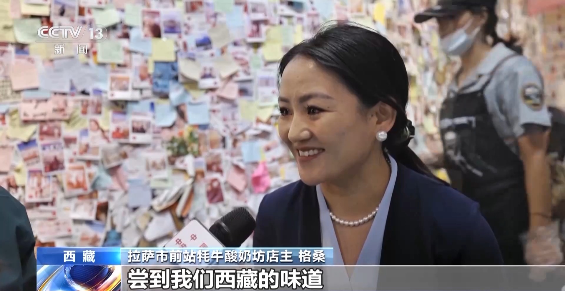 拉薩市前站牦牛酸奶坊店主 格桑:牦牛奶不能夠超過三個小時,超過三個小時就會壞。路好了之后,我們就可以到更遠(yuǎn)的地方去采購更新鮮的牦牛奶,包括蛋糕上面的青稞粉是日喀則的,人參果是從那曲運過來的,現(xiàn)在交通便利了,所以我們可以用最地道的食材做最地道的酸奶,也能讓天南地北的游客嘗到我們西藏的味道。