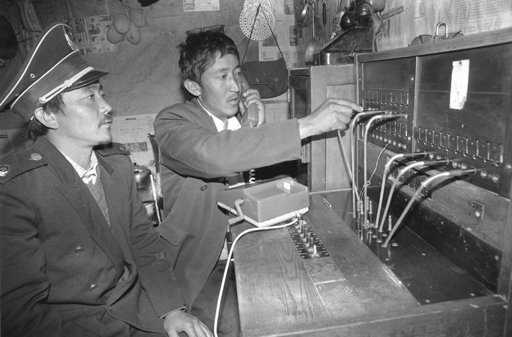 1994年4月16日,西藏江孜縣年堆鄉(xiāng)工作人員正在接電話(huà)。新華社記者 土登 攝