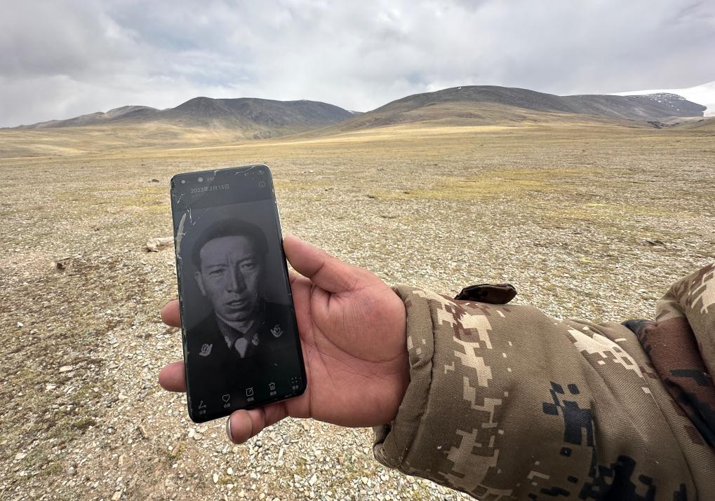 野保員格桑倫珠向記者展示他手機(jī)中珍藏的羅布玉杰的照片。新華社記者 費(fèi)茂華 攝
