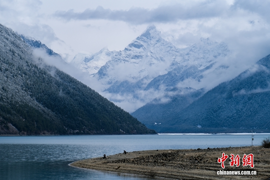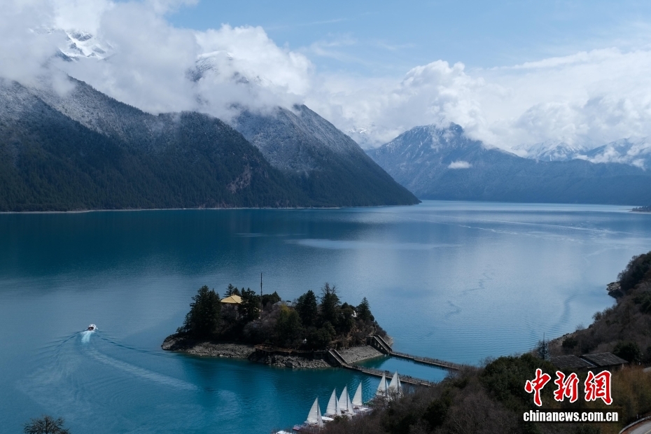 位于西藏林芝的巴松錯(cuò)迎來(lái)一場(chǎng)春雪,雪后風(fēng)光如畫(huà)。圖為巴松錯(cuò)與遠(yuǎn)處的雪山風(fēng)光。中新社記者 江飛波 攝