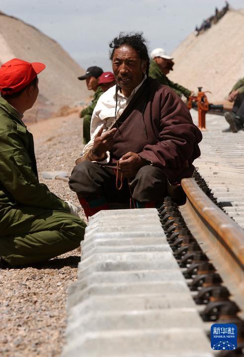 彼時(shí),青藏鐵路的建設(shè)工地也成了附近居民最大的關(guān)注點(diǎn)。老鄉(xiāng)們來(lái)到工地東瞅瞅、西瞧瞧,好奇地摸摸鐵軌,又或者拉上工人們問(wèn)問(wèn)這、問(wèn)問(wèn)那——盡管很多時(shí)候,由于語(yǔ)言不通,他們并不能夠了解對(duì)方在說(shuō)什么。但在家鄉(xiāng)人的臉上,我看到了對(duì)未來(lái)變化的憧憬,以及對(duì)鐵路建成越來(lái)越迫切的渴望。