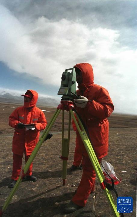 2001年4月,勘測(cè)人員在海拔近5000米的四道梁加緊進(jìn)行青藏鐵路的勘測(cè)工作。
