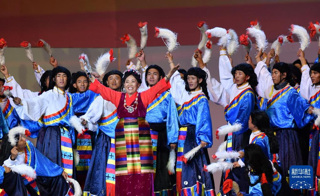 藏族女高音歌唱家才旦卓瑪在第四屆藏博會(huì)開(kāi)幕式文藝演出中(2018年9月7日攝)。
