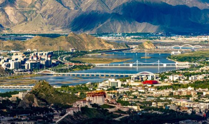 這是2025年7月30日拍攝的拉薩河風(fēng)光,由近及遠分別是連心橋、柳梧大橋、和美橋和青藏鐵路拉薩河特大橋。圖片來源:新華社