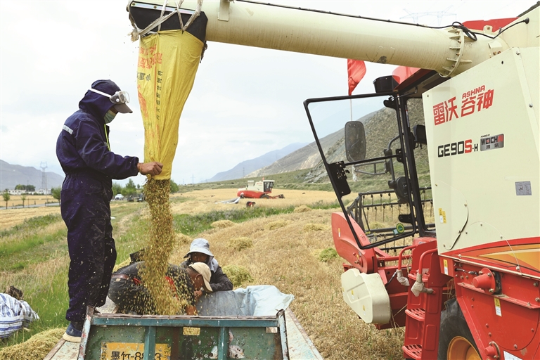 金秋十月,墨竹工卡縣的田野被染成金色,一年一度的秋收大幕正式拉開。田間地頭,大型收割機穿梭作業(yè),村民們緊隨其后,臉上滿是豐收的喜悅,勾勒出一幅“糧滿倉、人歡笑”的美麗秋收畫卷。