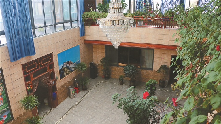 “現(xiàn)在的日子,以前想都不敢想。”剛組穿好睡衣從浴室出來,倒上一杯酥油茶,愜意地靠在沙發(fā)上。陽光穿過屋頂的玻璃天花板,在一樓墻壁投下斑駁的光影。望著二樓的房間,剛組回憶起了半個多世紀前。