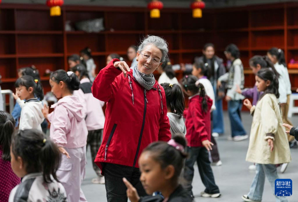 9月14日,巴桑老師在西藏自治區(qū)群藝館教授孩子們藏戲表演。新華社記者 晉美多吉 攝