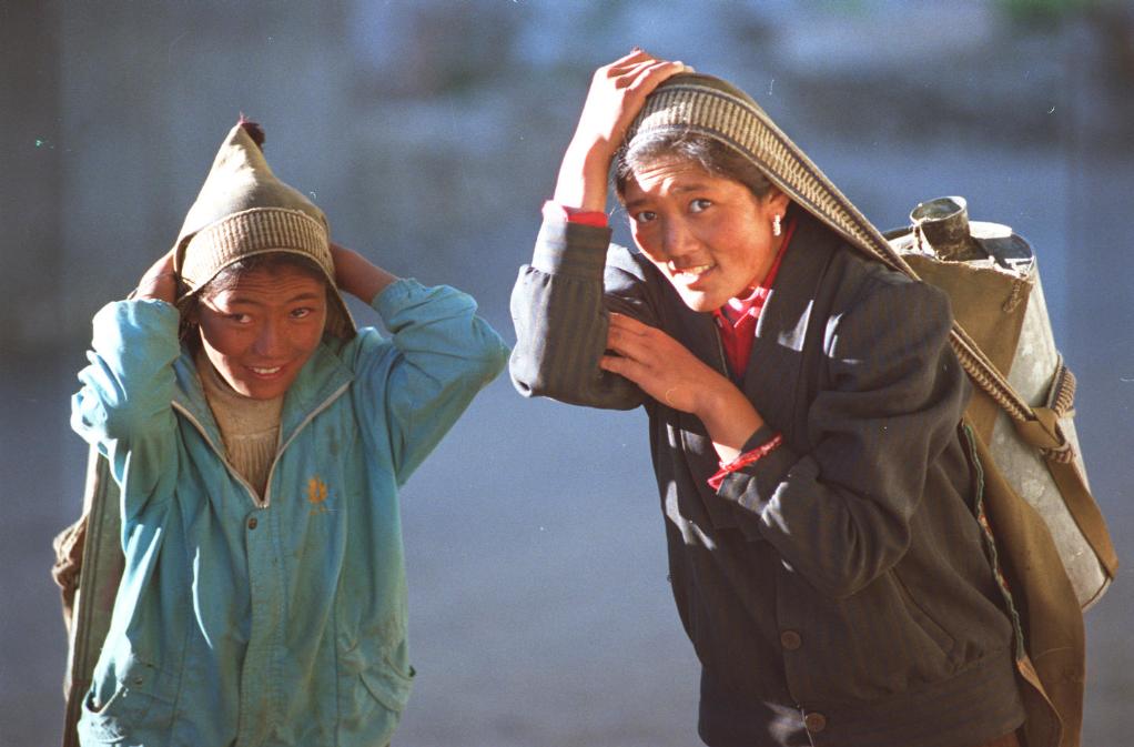 在西藏的阿里高原,背水一度是當(dāng)?shù)夭孛瘾@取生活用水的主要方式。(1997年10月26日發(fā))