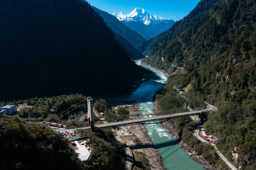 在西藏自治區(qū)林芝市波密縣拍攝的國道318公路通麥特大橋(2024年11月8日攝)。新華社記者 沈伯韓 攝