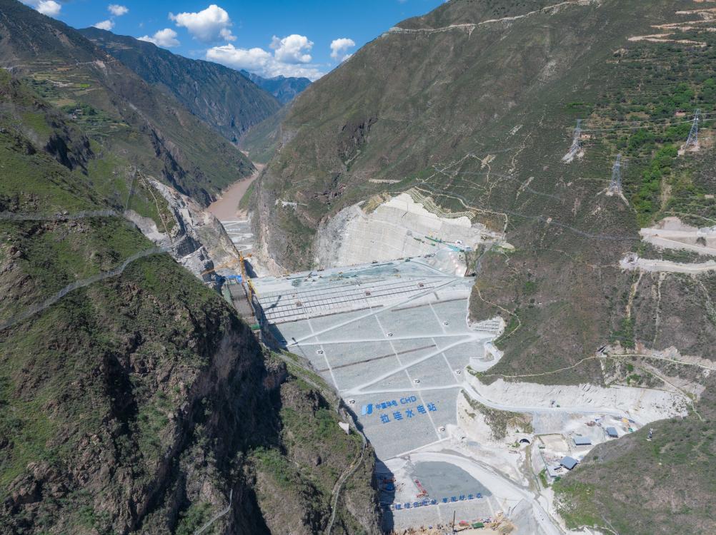 建設(shè)中的華電金上拉哇水電站。(蘇婷 攝)