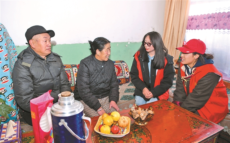 林芝市察隅縣下察隅鎮(zhèn)新村駐村干部入戶到當?shù)貎\人群眾家中,輕松愉快地拉家常。記者 白瑪澤旺 次仁平措 攝