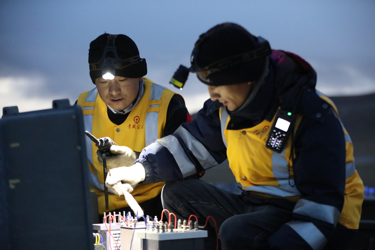 與此同時,在海拔4000多米的火車隧道旁,另一場守護正在上演。變配電專修工區(qū)副工長登增次仁正帶領(lǐng)工友,背著沉甸甸的工具包,攀爬在陡峭的護坡上。寒風如刀,他們的腳步卻無比堅實。