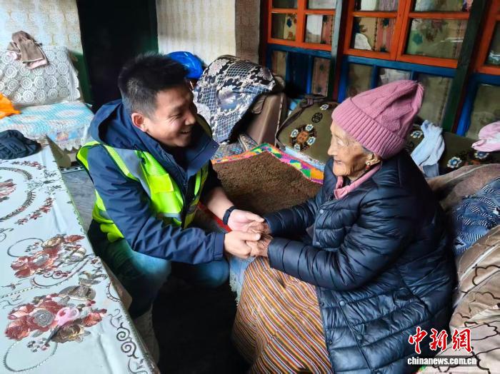 圖為西藏山南瓊結(jié)風(fēng)電項(xiàng)目赴仲堆村慰問(wèn)孤寡老人。中建二局 供圖