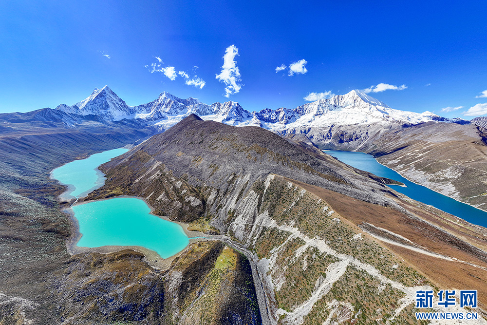 10月11日拍攝的庫(kù)拉崗日-白瑪林錯(cuò)景區(qū)(無(wú)人機(jī)照片)。新華網(wǎng) 旦增努布 攝