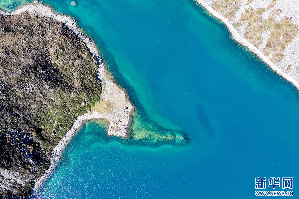 10月11日拍攝的白瑪林錯(cuò)(無(wú)人機(jī)照片)。新華網(wǎng) 旦增努布 攝