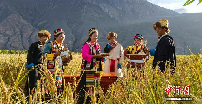 圖為共康村村民舉行水稻收割前的慶祝儀式。趙延 攝