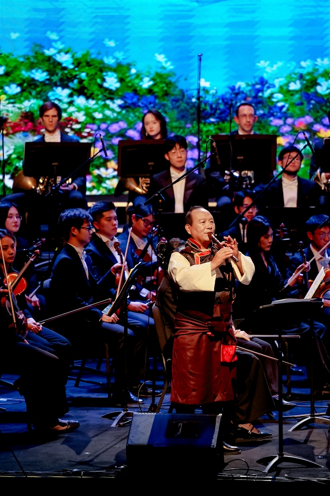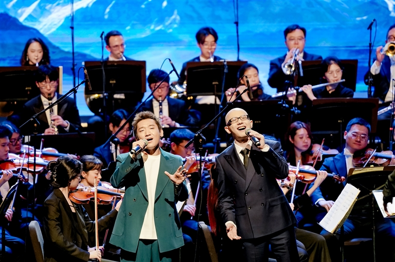 藝術(shù)形式的創(chuàng)新融合是本次音樂(lè)會(huì)的一大亮點(diǎn)。二重唱《茉莉與格桑》優(yōu)美詮釋了民族文化的交流共生;器樂(lè)演奏《“飛弦踏春”與“賽馬”》則讓著名二胡演奏家陳軍的激昂琴聲與扎念琴演奏員措姆的熱情彈奏展開(kāi)對(duì)話,碰撞出令人振奮的藝術(shù)火花。從展現(xiàn)拉薩當(dāng)代生活的電視劇插曲《藍(lán)天上的云》,到描繪鄉(xiāng)村振興新貌的《童話里的格林村》,再到融合原生態(tài)山歌與專(zhuān)業(yè)唱法、曾為中央代表團(tuán)獻(xiàn)唱的《珠穆朗瑪》,一系列新創(chuàng)作品生動(dòng)展現(xiàn)了傳統(tǒng)與現(xiàn)代交織、充滿活力的社會(huì)主義新西藏。