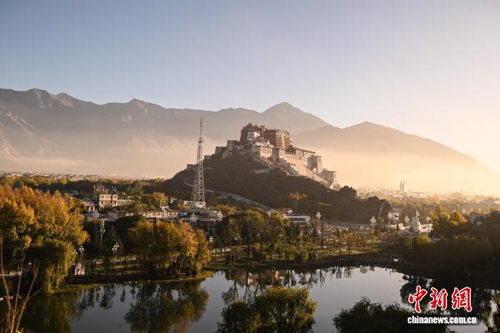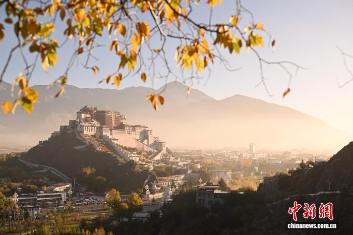10月22日清晨,薄霧尚未散盡,西藏拉薩團(tuán)結(jié)公園的黃葉與布達(dá)拉宮相映成趣,勾勒出高原秋日的獨(dú)特畫(huà)卷。中新社記者 貢嘎來(lái)松 攝