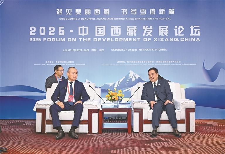 10月28日,自治區(qū)黨委書記王君正在林芝會(huì)見參加2025·中國(guó)西藏發(fā)展論壇的外國(guó)政要和駐華使節(jié)。這是王君正會(huì)見聯(lián)合國(guó)秘書長(zhǎng)古特雷斯先生的代表,聯(lián)合國(guó)教科文組織駐華代表、東亞辦事處主任兼代表夏澤翰。本報(bào)記者 旦增西旦 攝