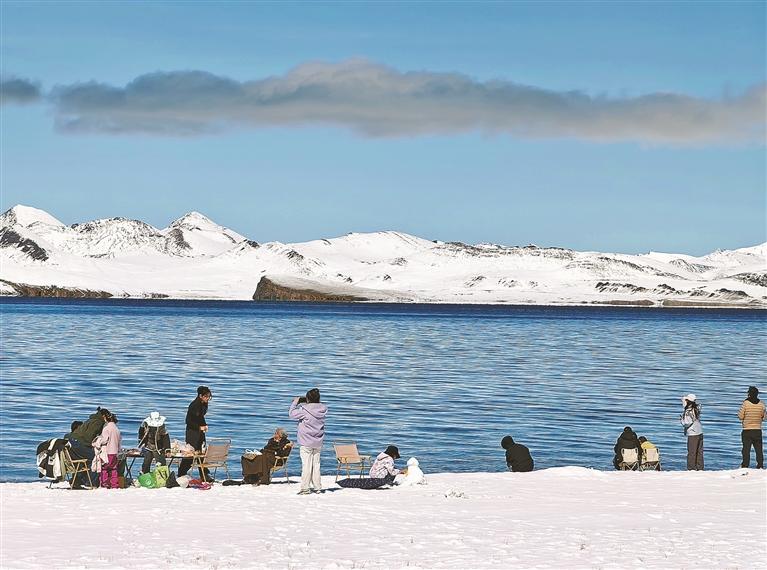 林芝市工布江達(dá)縣新錯湖畔,游客在雪景中打卡留念,盡享高原湖光山色。記者 次仁平措 攝