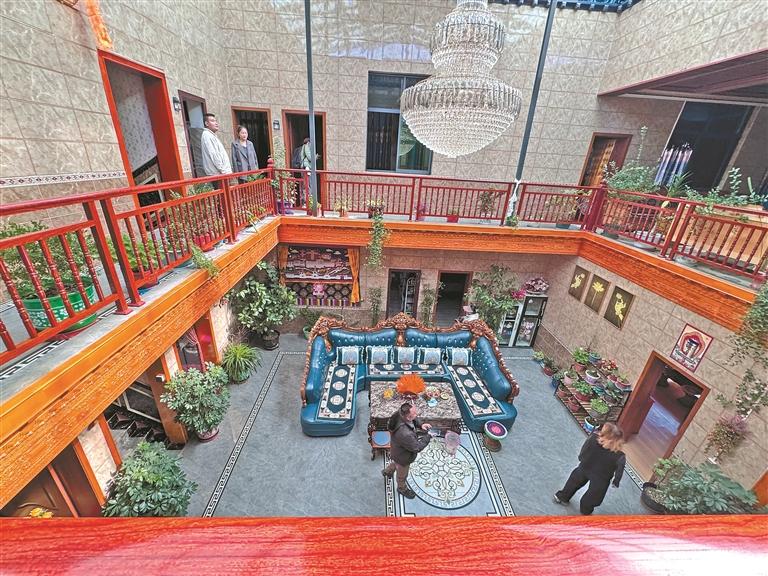 走進(jìn)次仁措姆家院子里,她正在自家果園采摘?jiǎng)偝墒斓氖?,房前的小院里整齊擺放著各種盆栽?!耙郧胺壳拔莺箅s物亂堆,經(jīng)過整治,空出的地方種上了蔬果,現(xiàn)在家家戶戶都有小果園,多虧了村里的整治行動(dòng)?!贝稳蚀肽奉I(lǐng)著我們到客廳,指著墻上的“美麗庭院”流動(dòng)紅旗笑著說:“這面旗是上個(gè)月評(píng)上的,現(xiàn)在村里都比著搞衛(wèi)生,誰也不想落后?!?/p>