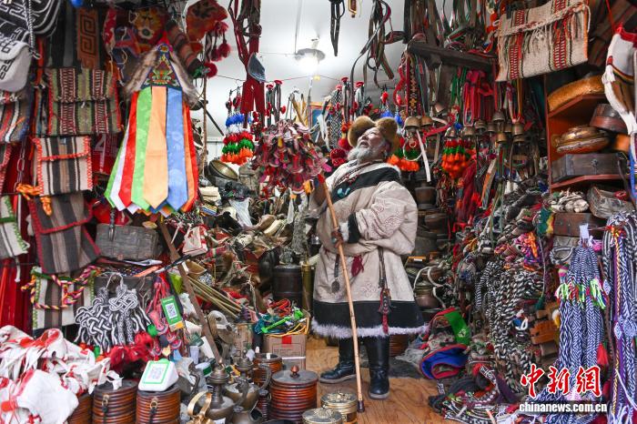 圖為次仁羅布在藏式老物件小店內(nèi)工作。中新社記者 貢嘎來(lái)松 攝