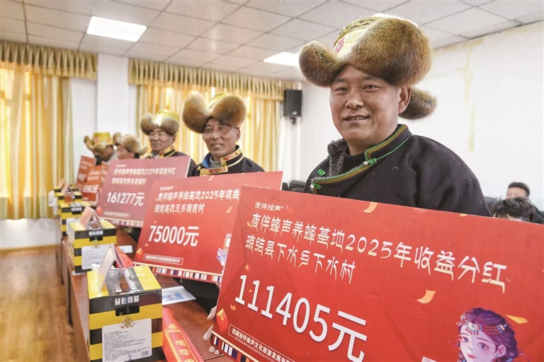 近日,山南市瓊結(jié)縣農(nóng)業(yè)農(nóng)村和科技水利局舉行了養(yǎng)蜂產(chǎn)業(yè)分紅儀式?,F(xiàn)場依次公布分紅金額:“加麻鄉(xiāng)昌嘎村161277元、加麻鄉(xiāng)白松村159651元、下水鄉(xiāng)下水村111405元……”一個個數(shù)字背后,是瓊結(jié)縣養(yǎng)蜂產(chǎn)業(yè)兩年多培育的豐碩成果,更是村民共享發(fā)展紅利的甜蜜喜悅。