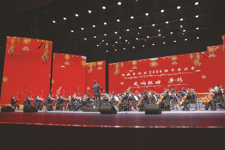 2025年12月30日晚8時(shí),西藏自治區(qū)2026新年音樂會(huì)在西藏大劇院奏響發(fā)展新聲。本場(chǎng)音樂會(huì)由西藏自治區(qū)黨委宣傳部指導(dǎo),自治區(qū)文化和旅游廳、西藏廣播電視臺(tái)主辦,西藏自治區(qū)歌舞團(tuán)、藏劇團(tuán)及西藏演藝有限責(zé)任公司承辦,特邀中央歌劇院指導(dǎo),西藏自治區(qū)歌舞團(tuán)、藏劇團(tuán)與中央歌劇院交響樂團(tuán)聯(lián)合演出,以“以古照今 樂動(dòng)新年”為主題,將歷史厚重與時(shí)代溫度熔于一爐,為現(xiàn)場(chǎng)觀眾獻(xiàn)上兼具精神洗禮與藝術(shù)享受的聽覺盛宴,以文藝之姿迎接2026年的到來(lái)。